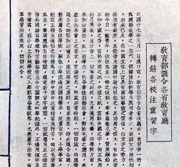 民国教育部仍旧发电文