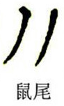 1、鼠尾:常出现在撇画上,似老鼠的尾巴,样子不好看。主要原因是用笔无力,轻浮在纸上,飘滑而去。毛笔在运行时有提无按,不得撇画用笔要领所致。书写撇画应用笔沉着,向下的按力均匀,笔锋送到顶端,由粗向细的过渡要缓慢自然,中锋用笔。