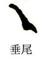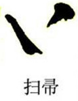 7、扫帚:指点画收笔时,散锋过多,无回锋之状,而散乱的出锋像扫帚一样,故而得名。如果经过藏锋回出,笔锋送到末端,提锋收笔。仍不能改变“扫帚”之状时,建议改换毛笔。
