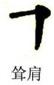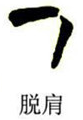 8、耸肩:与鹤膝不同的是,耸肩以方折为主,虽然有楷书的“折味”,但过于高扬,故作姿态,与下方的竖画过于悬殊,不能自然过渡。与左方的横画亦失去比例,不能达到协调与一致。故在书写时应予以重视,防患未然。