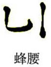 9、蜂腰:这种病笔出现在弯钩、竖画及横画等笔画中。两头浑圆粗大,而中间细柔,像蜂腰式。这种病笔的发生,常常是起笔和收笔下按过重,不注意中锋运行,造成中间和两头比例失调。故书写时,要提按平稳,用力匀称,出锋自然。