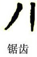 11、锯齿:锯齿病笔一般是使用偏锋不当而致,以撇画者居多。稍不注意,其它点画亦有可能出现“锯齿病”。它的主要特征是一边光滑,一边带齿状,也有两边带锯齿状的病笔。要克服这种现象,必须强调中锋用笔。