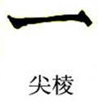 12、尖棱:落笔过于露锋,致使点画呈尖角锐棱,张牙舞爪,失去了点画圆润含蓄的遒丽特点。要记住“逆入回出”的道理,可方圆兼备,但不能有“尖棱病”。