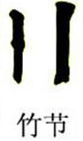 14、竹节:点画似竹节状。这是因为对点画形质认识模糊,用笔不当所致。经观察可知,下笔逆入方位不够正确,笔锋转驻时大生硬,而中间运行过于上提,收笔应提锋时却下按,使点画失态,盲生圭角。“竹节”在大多数楷书中系病笔,但在某些魏碑法帖中,有所应用。