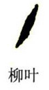 16、柳叶:笔画似柳叶形状,俗称“柳叶病”。一般来说这在楷书中是不允许的,在颜真卿的《勤礼碑》帖中,有些长撇呈两头尖中间粗状,但它过渡自然,反差不大,具有长撇的特点与优美形象,两者之间有根本性的区别。点画成了柳叶状,也就成了病态。所以在临习时,要入帖,在出帖创作时,点画要更刚劲遒丽,形质优美。
