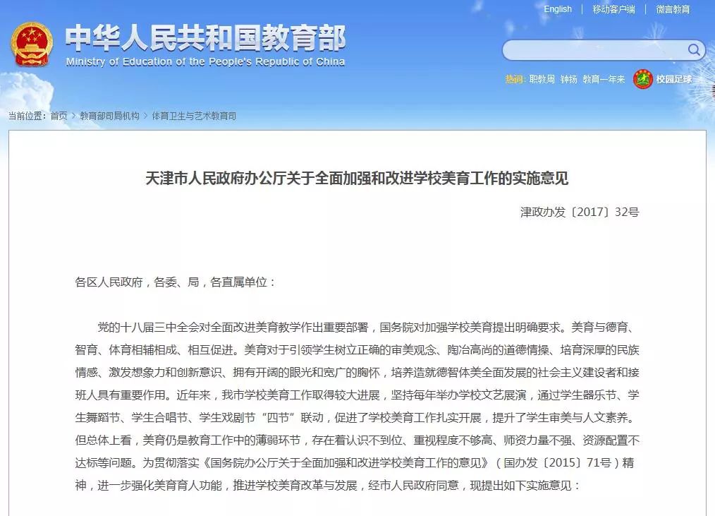 和改进学校美育工作的意见