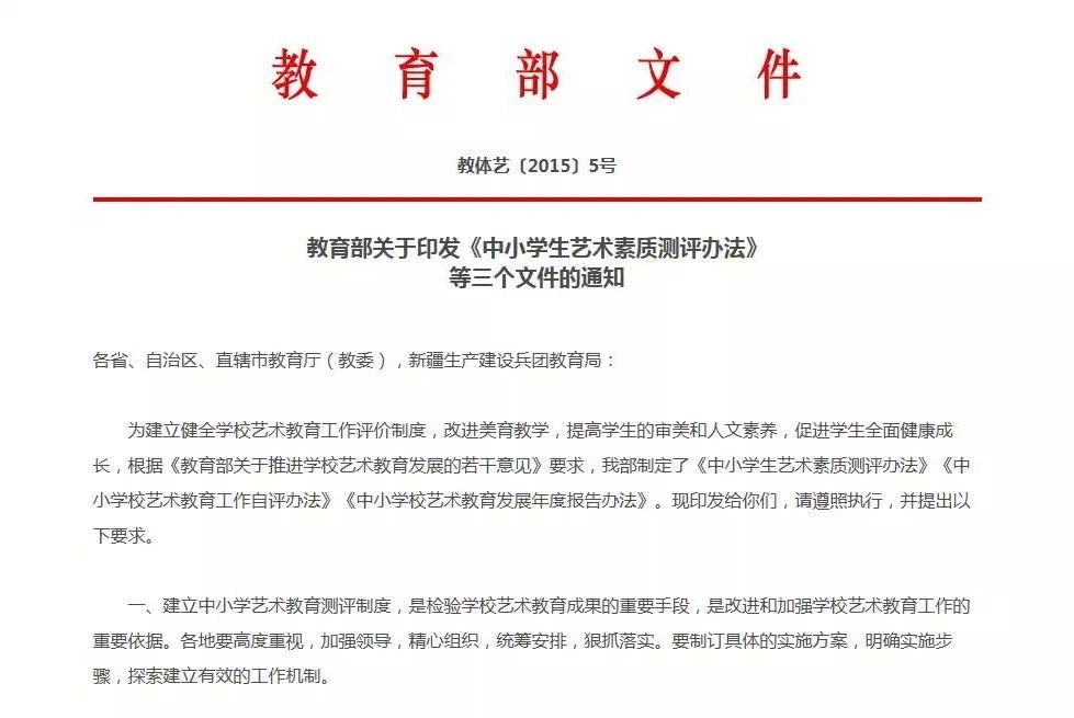 (教体艺〔2015〕5号)