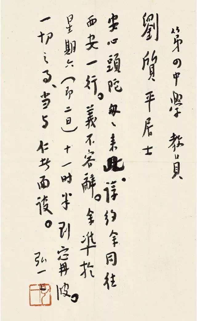 这四年(1924—1927),弘一在印光的启发下,借鉴魏晋小楷,北碑风气终于被彻底打破,楷书新风格开始悄然形成:平静、沉稳而恬淡。不过,这只是正经创作的时候,写给朋友的信札可不是。