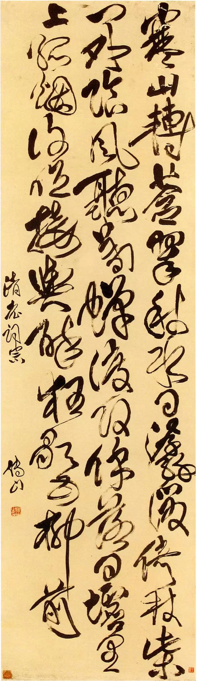 再有,不同的字体与书体对基本功的要求有所不同,有所侧重。篆、隶、楷属静态字体,在笔法与结字的功力上要求比较严格,更讲究笔法的精确性和稳定性,对行气、章法和墨法的要求次之。行、草则讲求笔法字形的变异性和灵活性,讲求行气、章法的节奏性、通畅性和和谐性,讲求墨色的层次韵律。同时,不同的字体、书体与不同的风格、流派,对基本功的要求也有不同的侧重。写北碑一系,要求对方笔的刻画能力要强;写篆要求对圆笔弧线的把握能力要强;写怀素、王铎要求对连续而快速的驭笔能力要强;写二王要求对 行气韵律的控制能力要强;写郑板桥要求对穿插争让的调度能力要强等等。因此,从微观角度讲,我们可以这样认为,篆有篆的基本功,楷有楷的基本功,隶有隶 的基本功,行、草有行、草的基本功。