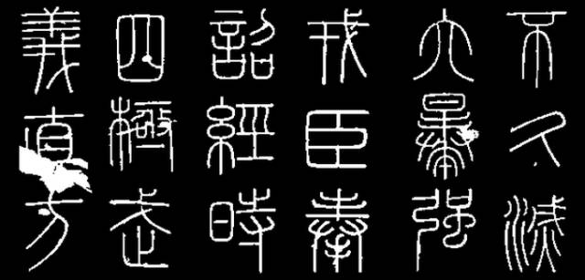 相传在秦朝时篆字就有若干种。有鸟、虫、蛇头篆,这些篆书的起笔处画有鸟、虫、蛇头的形状。书法艺术不是具象的再现客观事物,而是抽象的艺术。因此,这类书体只能在历史上昙花一现,不能成为真正的书法艺术。就篆书的艺术而言钟鼎文、石鼓文结构奇古,融入了先民质朴的美,更受后人所喜爱。周宣王时的《毛公鼎》上共有32行,497字的铭文,是金文作品中的佼佼者。此外,《大盂鼎》、《散氏盘》也是金文中的上乘之作。