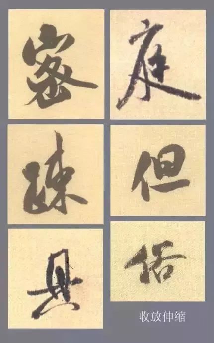 为了对比变化的需要,字的某一笔画(部分)左右收缩,突出另一笔画(部分);为了对比变化的需要,字的某一笔画(部分)上下伸展,另一笔画(部分)收缩。