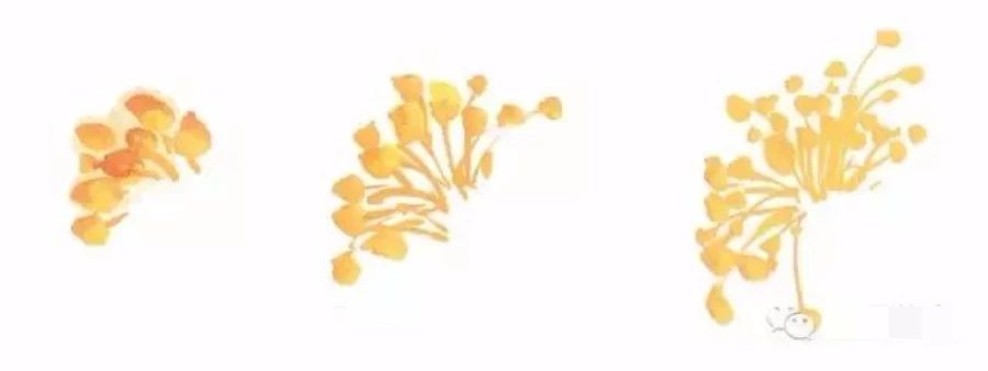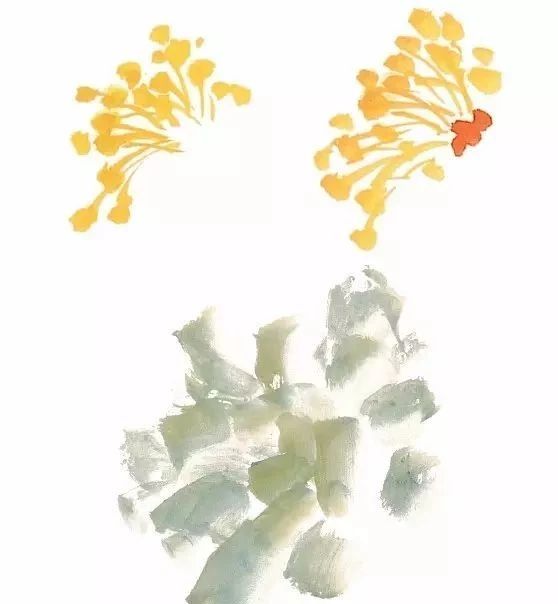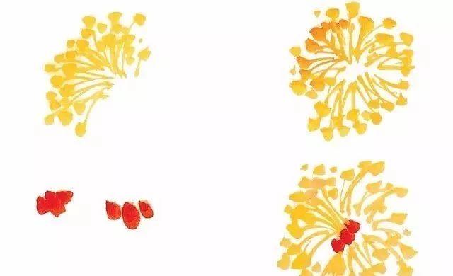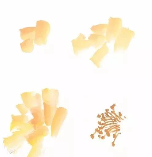 用藤黄加朱磦加白粉勾画雄蕊,雌蕊用朱磦加少许藤黄点之即可