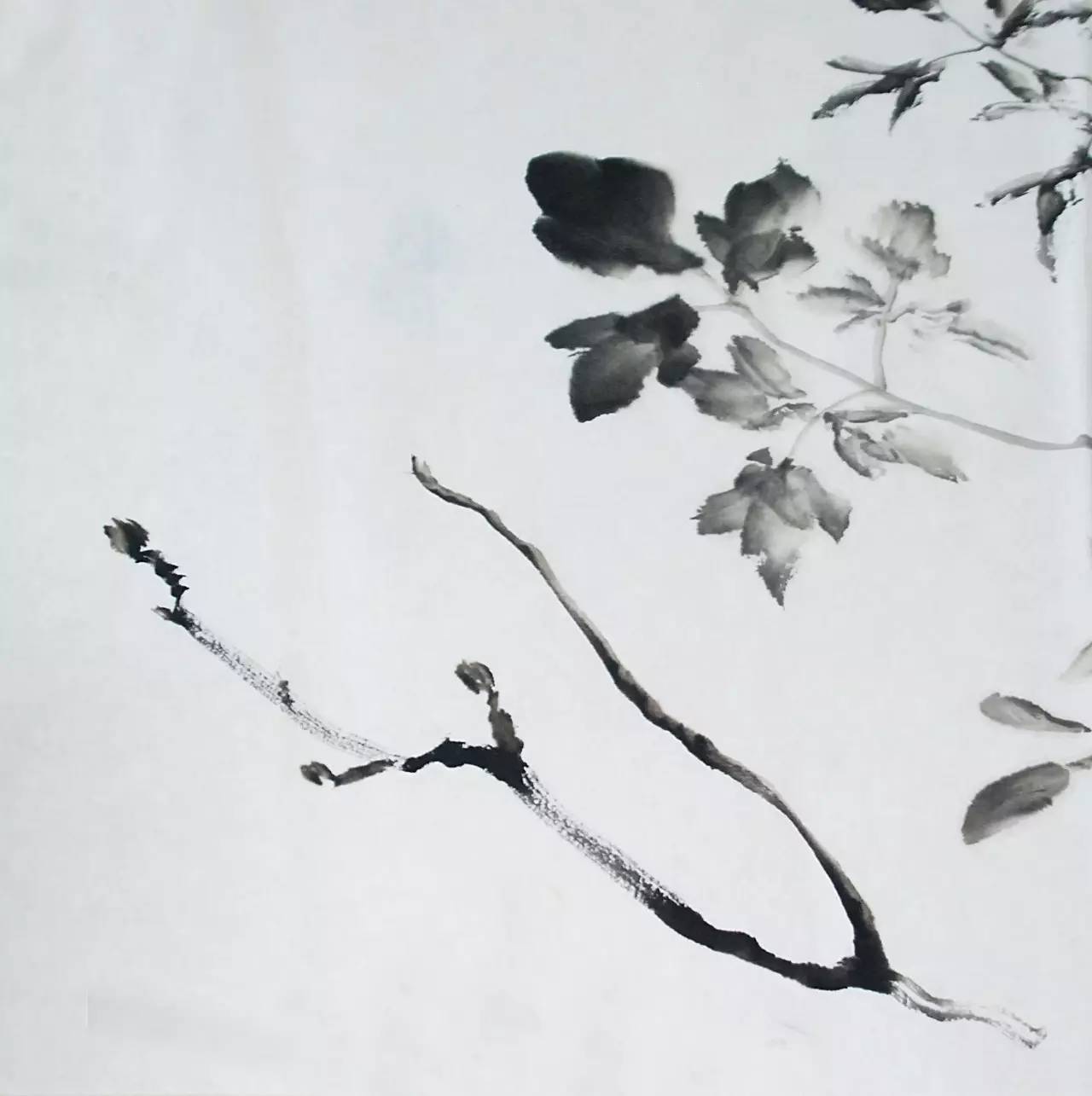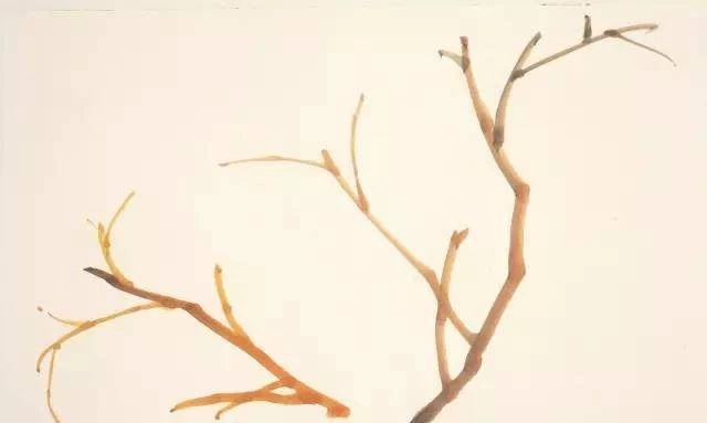 用墨色画老枝,再用墨色加少许出嫩枝。注意老枝与嫩枝的衔接。