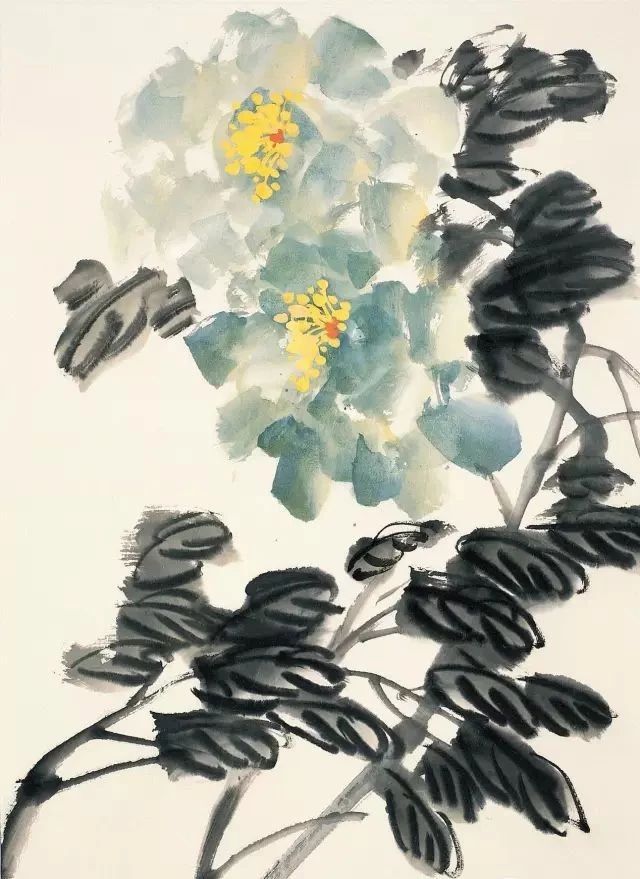 画绿牡丹可用花青加藤黄加白粉,再蘸赭石着色,叶可用花青加藤黄蘸墨。