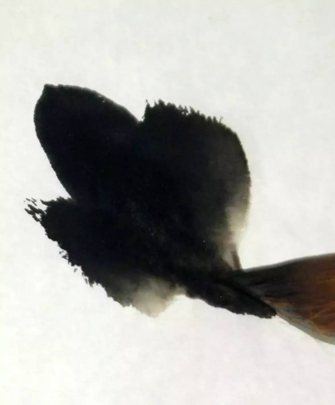 用墨色画花瓣,用笔要干脆利落,方圆结合。较碎的笔触和较整的笔触要相互照应,同样也要运用到飞白。