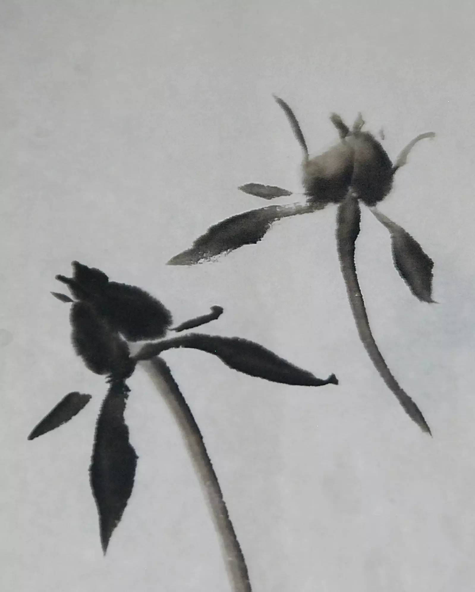 不同方向的花蕾及叶芽的形态。此中用墨勾叶茎,根据不同的画面,有时也可用浓胭脂勾画叶茎。