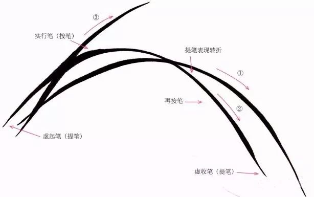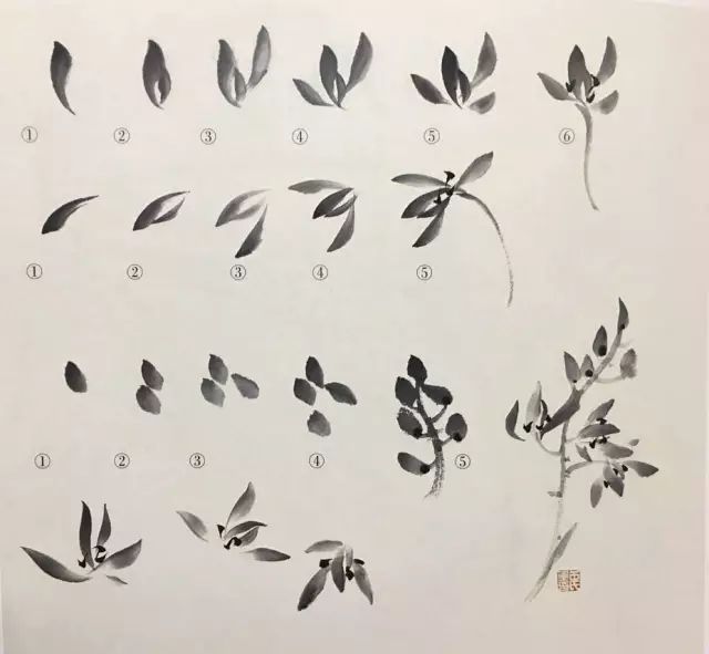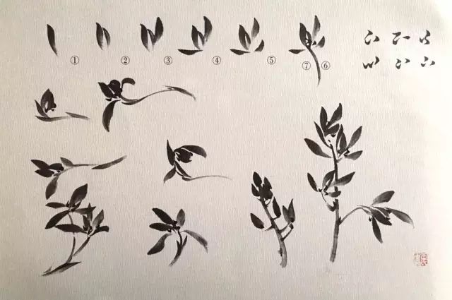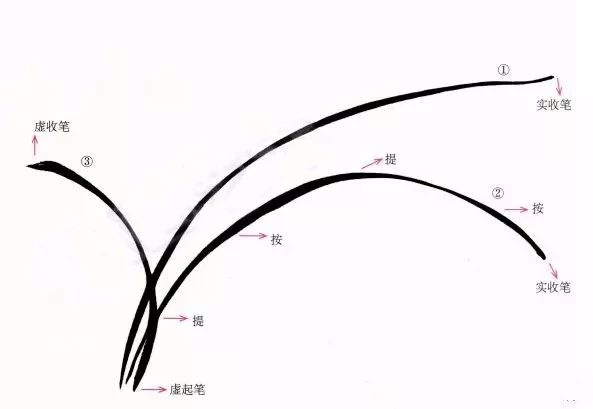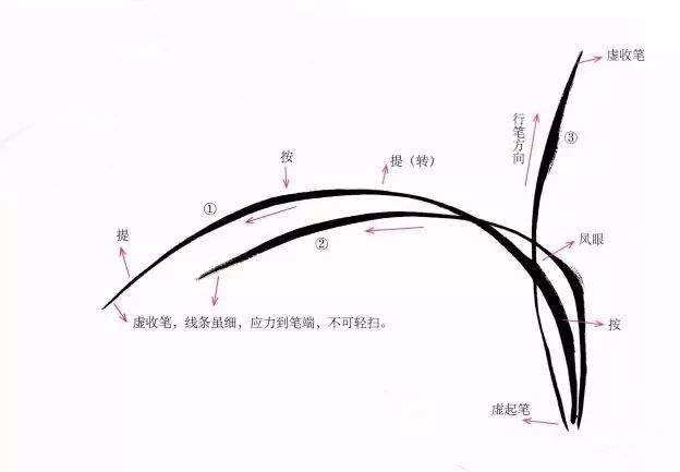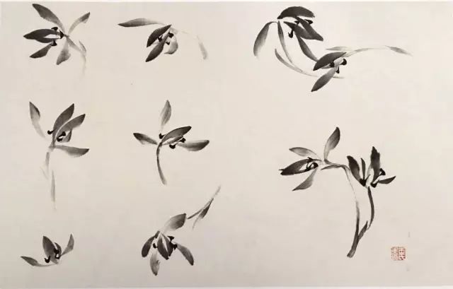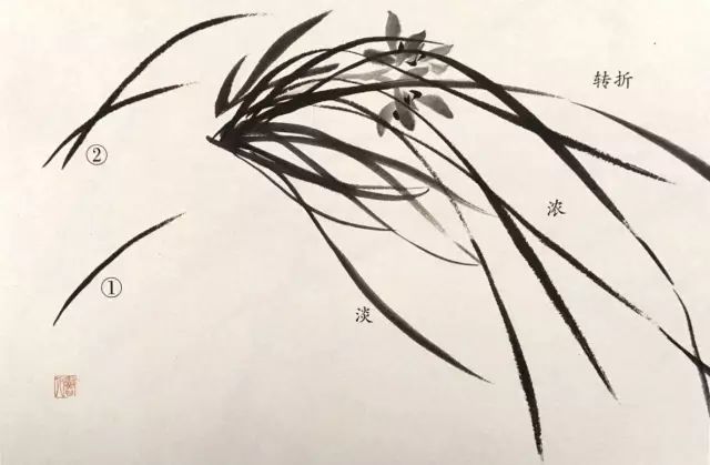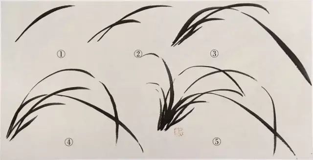 每笔兰叶在行笔过程中的提按、圆转变化,以表现兰叶的自然转折姿态。↓↓↓