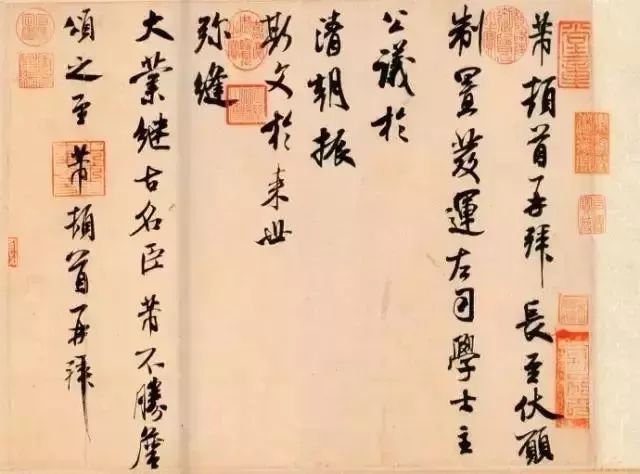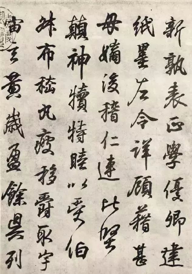 米芾就是善于营造一种险势,每一个笔画都动起来,还较着劲,特别有味道。因此要通过这种字势和笔势的关注,去把握字的运动状态和生命状态,表现出特有的神采。