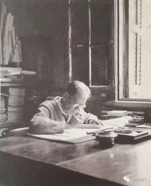 一九一三年到了北京,始一意临学北碑,从《龙门二十品》入手,而《爨宝子》、《爨龙颜》、《郑文公》、《刁遵》、《崔敬邕》等,尤其爱写《张猛龙碑》,但着意于画平竖直,遂取《大代华岳庙碑》,刻意临摹,每作一横,辄屏气为之,横成始敢畅意呼吸,继续行之,几达三四年之久。嗣后得元魏新出土碑碣,如《元显傍》、《元彦》诸志,都所爱临。《敬使君》、《苏孝慈》则在陕南时即临写过,但不专耳。在这期间,除写信外,不常以行书应人请求,多半是写正书,这是为得要彻底洗刷干净以前行草所沾染上的俗气的缘故。一直写北朝碑,到了一九三〇年,才觉得腕下有力。于是再开始学写行草,从米南宫经过智永、虞世南、褚遂良、怀仁等人,上溯二王书。因为在这时期买得了米老《七帖》真迹照片,又得到献之《中秋帖》、王珣《伯远帖》及日本所藏右军《丧乱》、《孔侍中》等帖拓本(陈隋人拓书精妙,只下真迹一等)的照片;又能时常到故宫博物院去看唐宋以来法书手迹,得到启示,受益非浅。同时,遍临褚遂良各碑,始识得唐代规模。这是从新改学后,获得了第一步的成绩。