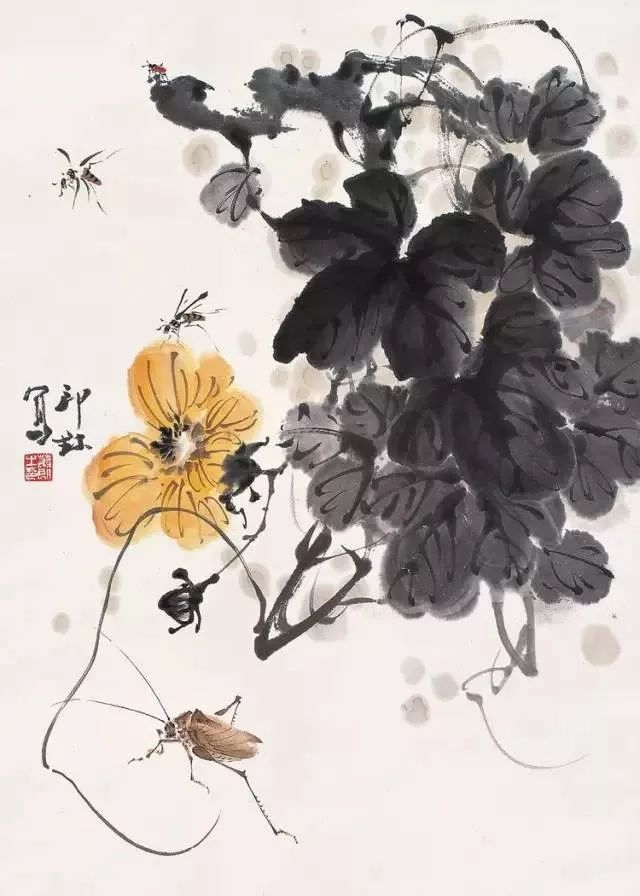 (写意花鸟画中)花学会了,叶子难画;叶会画了,枝干难画;枝学会了,草难画。最难的是草,如果会画草了就“毕业”了。