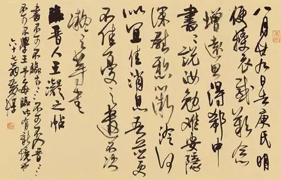 六、在学习书法的过程中,有些传世法贴 ,可由“法”的角度切入,通过临摹,不断掌握,如二王,颜、柳、欧、赵、虞、王等。而有些书家的作品,如果也以法的角度入手,那将不得要领,东施效颦。所以只能以“意”的角度学习其思想、胆识,继而领略其以笔墨为载体的心灵和人格之美。学这种法帖切忌依样画葫芦,如张旭、苏轼、二大、徐渭、傅山等。这类似李杜两大诗人。胡应麟:“李、杜二家,其才本无优劣,但工部体裁明密,有法可寻;青莲兴会标举,非学可至。”通俗的说,学第一类书家的字有可操作性;而第二类书家的字,如李广用兵,神出鬼没,无迹可寻。所以要以气、以情、以意而不是靠“法”来驾驭手中之笔。