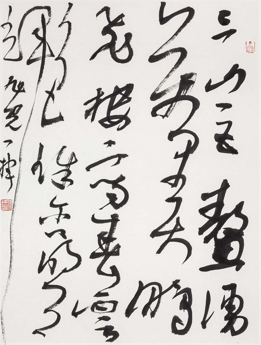 5、中侧并用。中锋得法立骨,侧锋得势求变。中锋是理性的要求,是书法审美的核心所在;侧锋是情性的化身,是书法通神的手段。