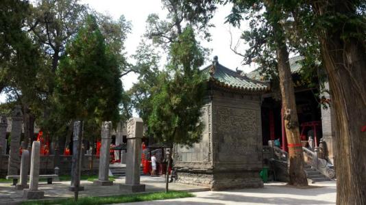 龙头凤尾柏——关陵大殿东西两侧有两棵古老的柏树。西边那棵,有一枯支下伸,形似龙头,人称“龙头柏”,东边那棵,树根裸露甚多,成扇面形,且环纹甚密,活像凤尾拖地,故称“凤尾柏”。传说中,此二柏是真龙真凤变的。而龙凤何以在此呢?