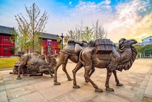 城东关外的中通巷,魏晋时叫铜驼大街,唐宋之时叫铜驼陌,明清时称铜驼街,民国初改称铜驼巷,它位于隋唐城的城东北隅,当时国际贸易市场“丰都市”一带。它西傍洛河,桃柳成行,高楼瓦屋,红绿相间,每当阳春时节,桃花点点,蝴蝶翩翩,莺鸣烟柳,燕剪碧浪,其景色之美,别有洞天,不亚于石崇的金谷园。隋唐时代这里人烟稠密,每当暮色茫茫,家家炊烟袅袅上升,犹如蒙蒙烟雨,纷纷扬扬,这就是人们赞不绝口的“铜驼暮雨”的由来。