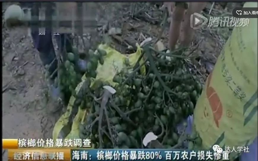 2013年7月14日央视的《新闻30分》中,报道了槟榔致癌,对该行业产生重大打击,槟榔价格暴跌。当年两个月后,央视财经频道再次报道“槟榔价格暴跌,海南百万农户损失惨重”。